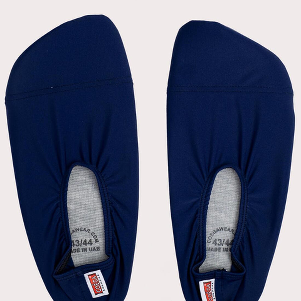 Our signature item! These resistant but lightweight anti-slip Toughtek soles provide a barefoot feel but superior protection from pool, beach, and waterpark heat and rough surfaces. Re-enforced toes and flat stitching allow for great comfort with a secure but easily removable fit, even when wet! Colour match with any items in the COEGA line for a complete sun-safe look. A great product to maintain grip on tile floors too. Go Ahead, Love the Sun!