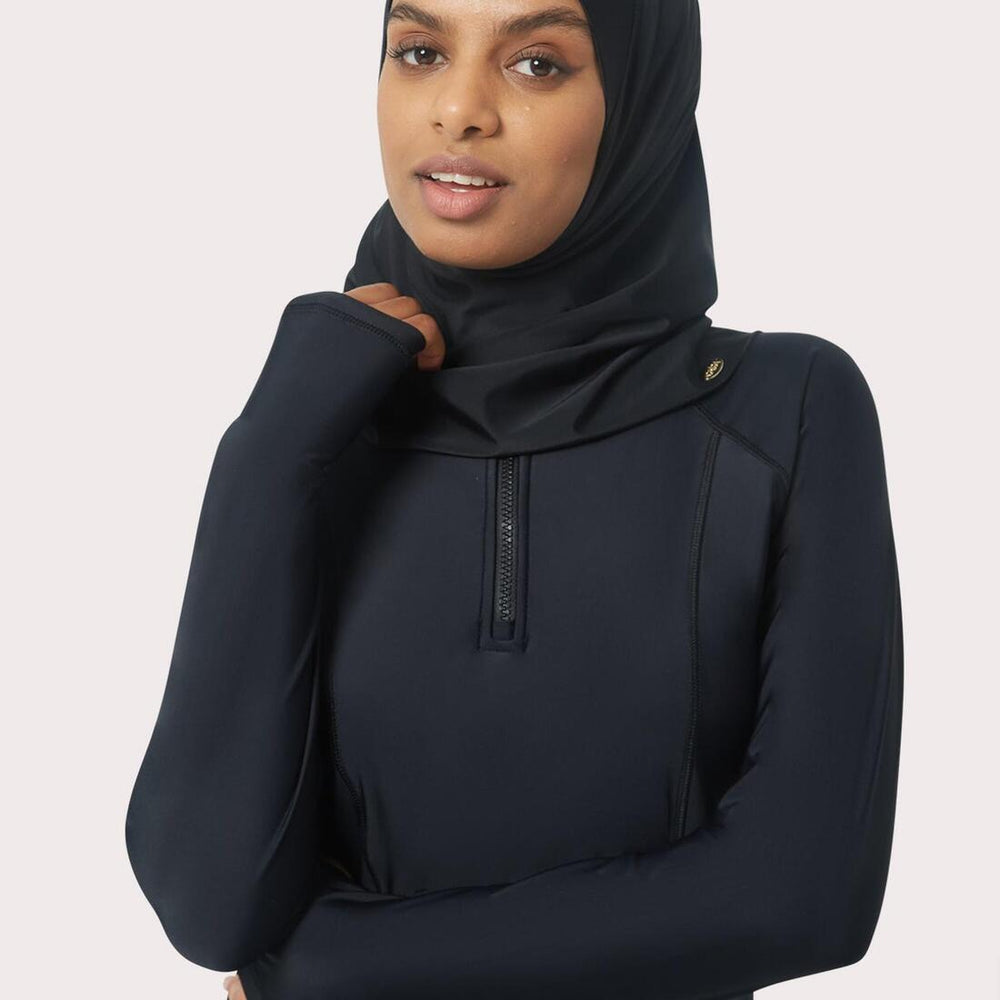 This uniquely designed shaela is well fitted around the face and loose on the neck. Can be worn in three different ways: covering the head and neck, covering the head and knotted at the back, or as a traditional hijab. Each hand-crafted piece protects your head, hair & neck from damaging effects of the sun, while allowing you to be comfortable in or out of the water. Can be purchased on its own or to coordinate with our other suits for complete coverage and protection.