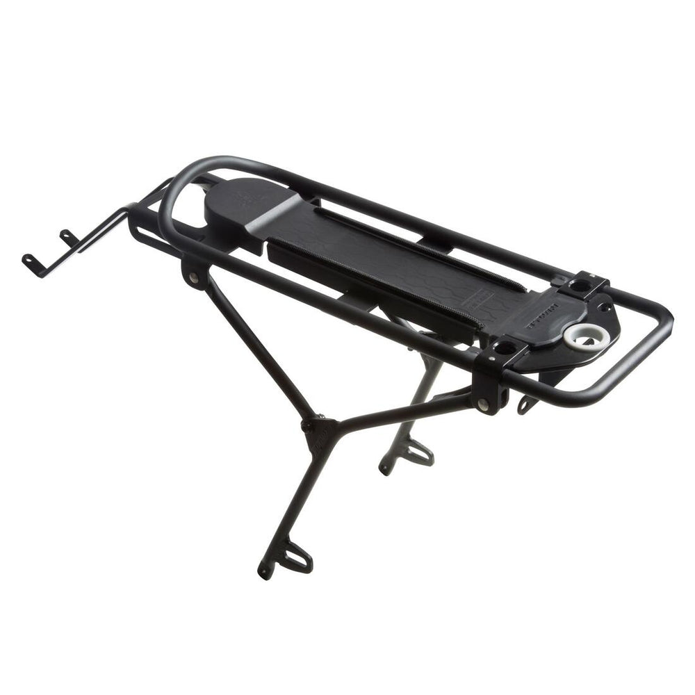 The OneSecondClip pannier and top case can be attached to the rack in an instant. Please note that this rack isn't suitable for baby carriers.