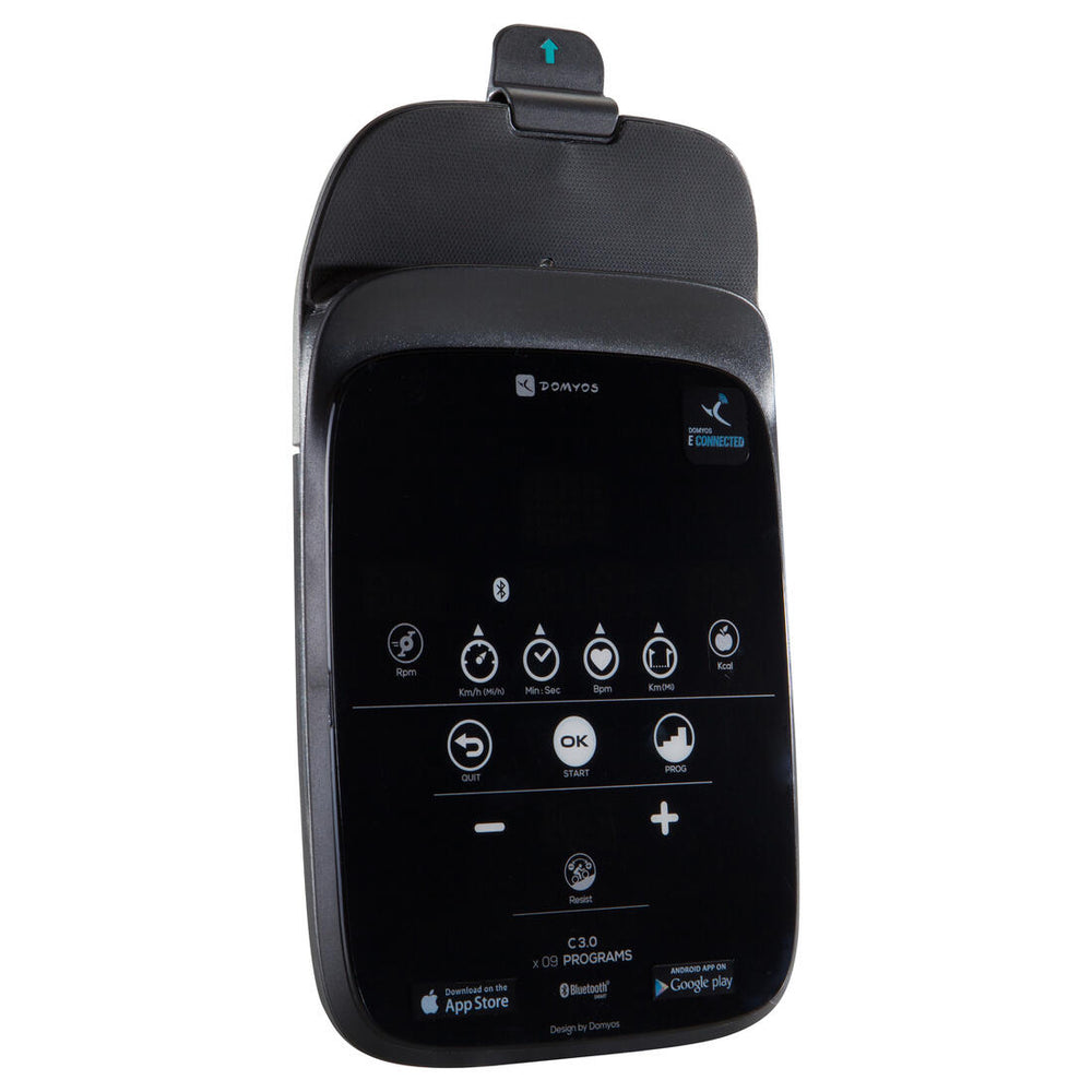 Model: C3 console. Bluetooth Low Energy connectivity with tablets and smartphones to use the app. 6 functions: calories burned, distance covered, training time, speed, heart rate and RPM. 9 programmes developed with our coaches.Also works with receiver for chest belt ref. 8316298.