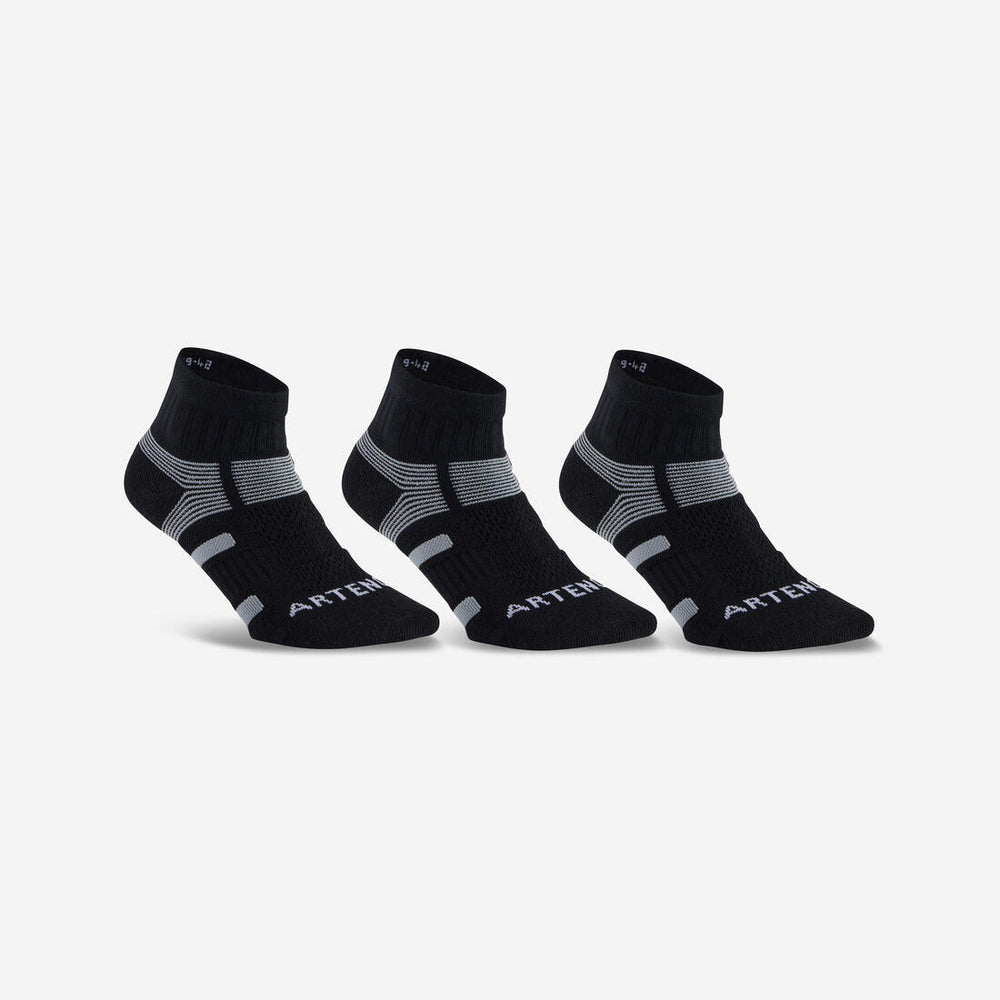 Artengo tennis socks with thick plush loops under the foot to reduce the risk of blisters. An elastic thread is knit across the entire foot for good support of the foot and ankle (mid- and high-cut models).
