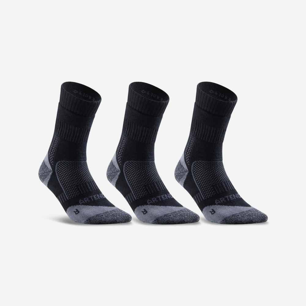 Artengo tennis socks with thick plush loops under the foot that reduce the risk of blisters. Two elastic bands envelop the entire sock and provide the foot with outstanding support, as well as the heel on high rise models.