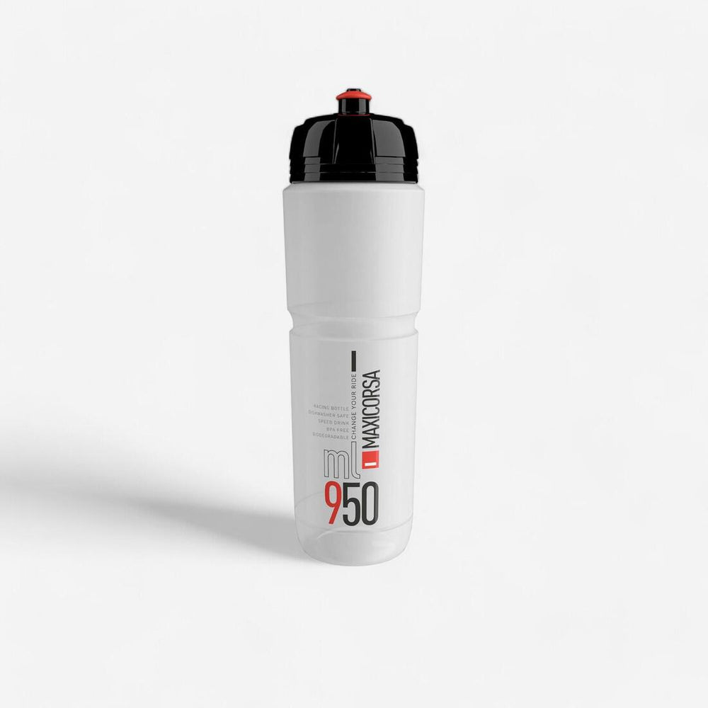 This 950ml bottle from Elite is specially designed for the hottest days and/or long rides. This classic Maxi Corsa design is easy to drink on the go.