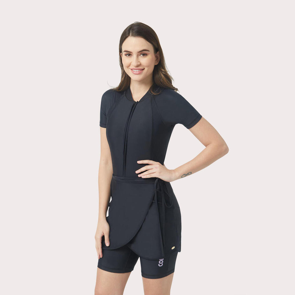 The short sleeves and shorter length legs provide UV sun protection and freedom of movement. The popular COEGA Slim-Kini works automatically to help enhance your figure in comfort & style all day long. A concept inspired by the one-piece wetsuit used by female sport divers, the COEGA Slim-Kini was further developed in lightweight, Italian fashion fabrics by COEGA's women designers.