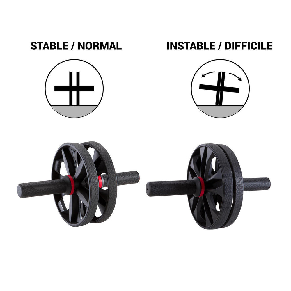 The product development team working on this wheel is comprised of athletes engaged in weight training. They had the (somewhat diabolical) idea to offer two workout modes with this wheel: stable or unstable. The instability deepens the muscle work that's already significant with an ab wheel.