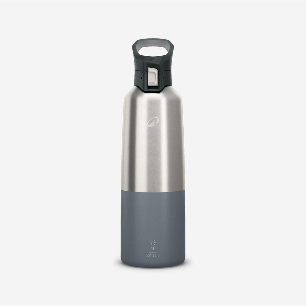 Stay hydrated with our 1L insulated hiking flask designed in lightweight stainless steel. It keeps drinks hot or cold for hours without weighing you down. Features a quick-open lock top and filter.