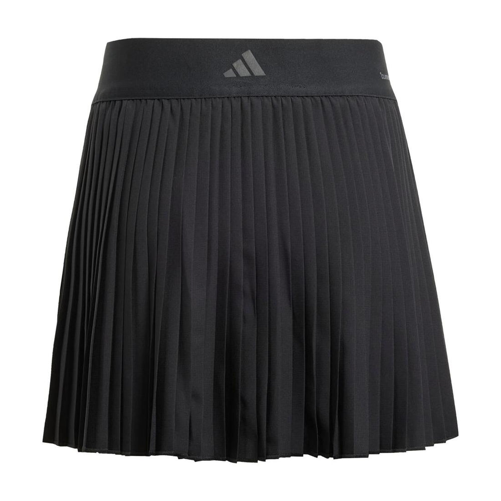 Add a dash of extra style to your play in this juniors' Club tennis skirt from adidas. Above those eye-catching mesh pleats, a wide elastic waist makes for comfortable movement. CLIMACOOL wicks and disperses sweat for cool, dry and distraction-free performance. Integrated inner leggings offer the coverage you need for confident play. This product is made with 100% recycled materials. Product Code: JC6728
