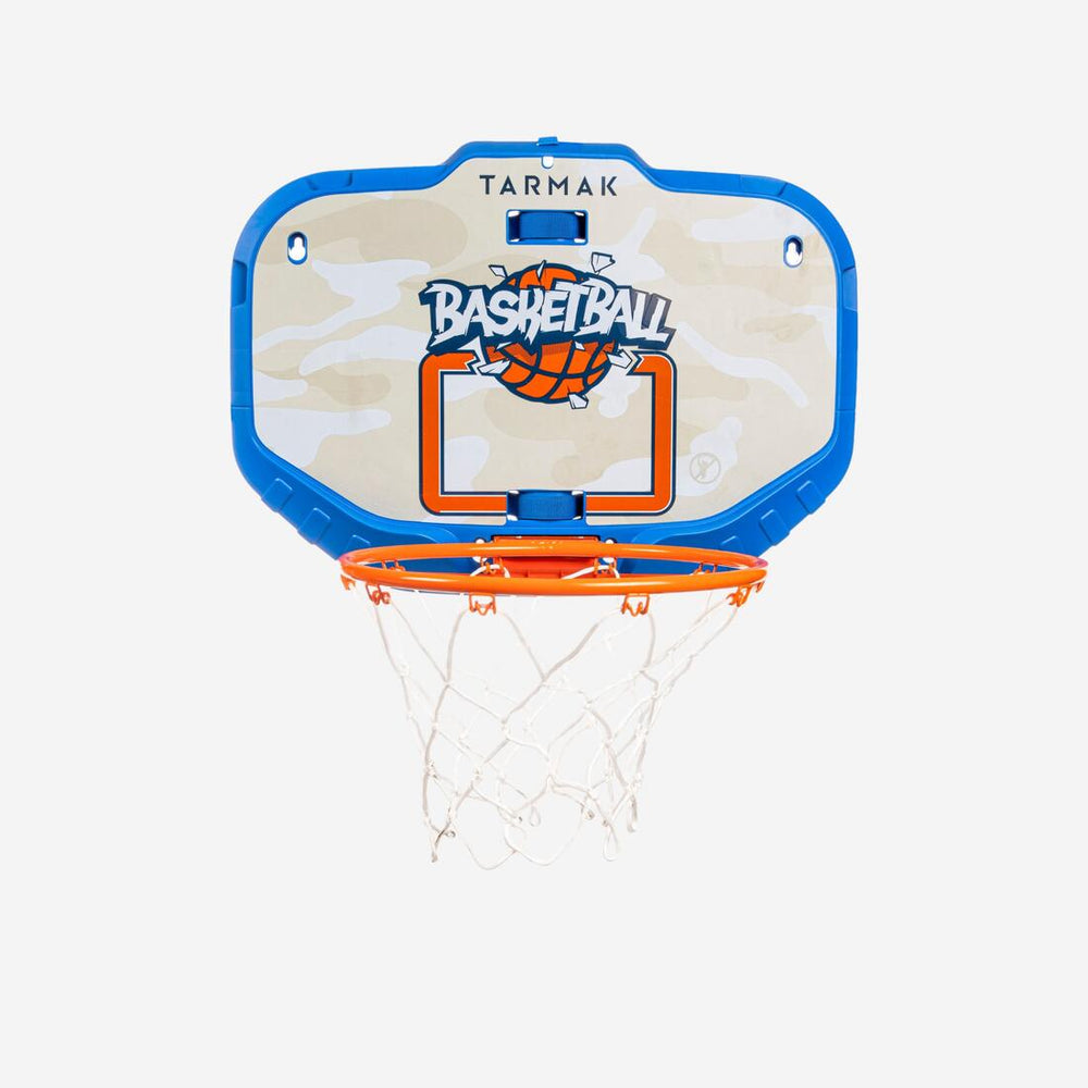 This wall-mounted basketball hoop is a Decathlon exclusive. It can be set up on any tree or post. It is lightweight and easy to transport. The hoop height is easy to adjust.